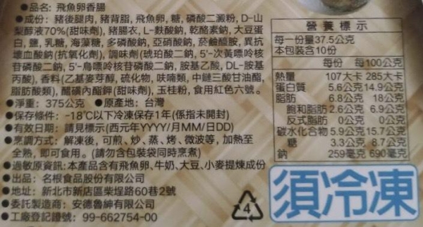 簡介 | 在香腸裡面加上飛魚卵,特殊的組合強碰出無比的口感,每咬一口都有嗶啵嗶啵的感覺,適合愛嘗鮮的朋友! |