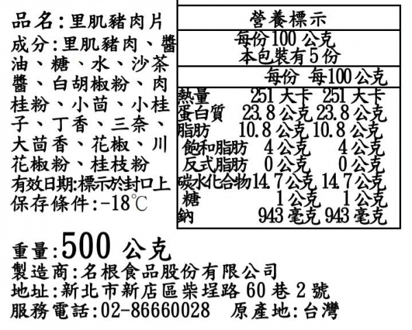 簡介 | 一律使用0.4cm的上等豬里肌肉片醃漬而成,使用的醃料為名根烤肉獨門秘方,因本身已經有醃料的味道,不須額外加太多烤肉醬就很美味! |