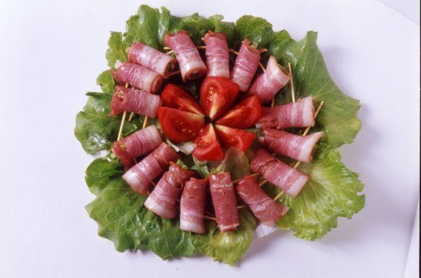 簡介 | 利用培根片將蔥段捲起來,再利用牙籤固定,雖然是手工繁複的一道菜色,但烤起來非常好吃!(食用時請小心牙籤) |